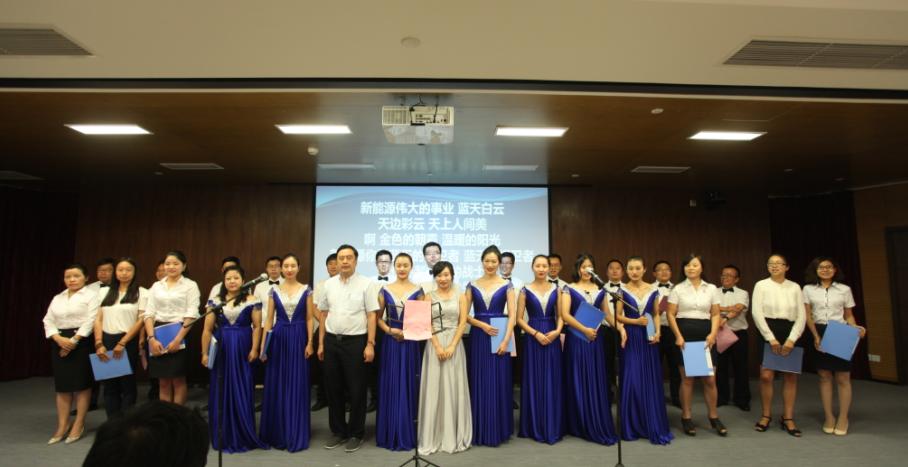 最后,由本次峰會會務(wù)組與天津區(qū)的干部聯(lián)袂合唱《新能源之歌》,首次隆重推出這首即將唱響新能源行業(yè)、唱響無錫、唱響全國的歌曲。這首歌曲由趙振元同志作詞,著名作曲家彭濤作曲,反應(yīng)了新能源建設(shè)者對新能源這項造福子孫后代的偉大事業(yè)的熱愛,表達(dá)了建設(shè)者們奮進(jìn)在新能源道路上,走向光明的決心與勇氣。合唱團(tuán)隊服裝整齊、意氣風(fēng)發(fā)、慷慨激昂的演唱贏得了與會干部的熱烈掌聲。