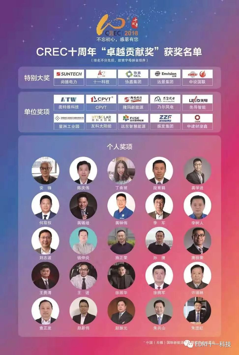 CREC十周年“卓越貢獻(xiàn)獎”名單