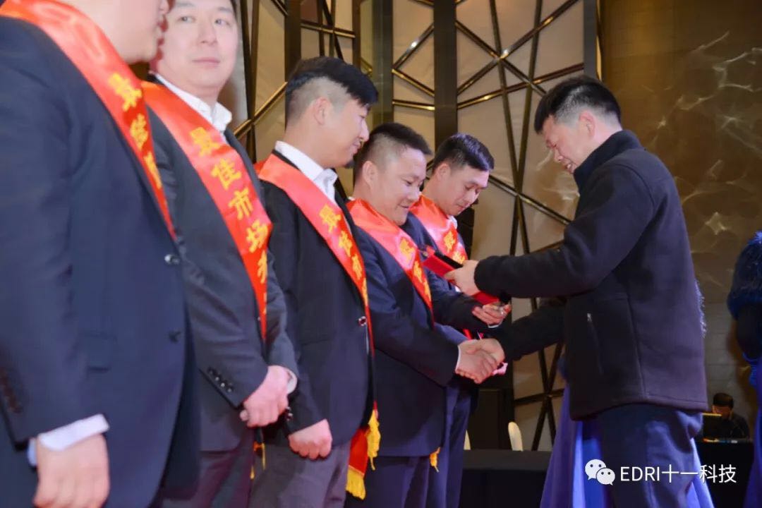 表彰環(huán)節(jié),由華東分院執(zhí)行院長(zhǎng)張平主持,十一科技高級(jí)專(zhuān)務(wù)、華東分院黨總支書(shū)記劉勝春首先宣讀了華東分院2018年度表彰文件,全體參會(huì)人員集體觀看了表彰視頻,短短9分鐘視頻,高度概括了受表彰人員的先進(jìn)事跡。會(huì)上共表彰了2018年度優(yōu)秀團(tuán)隊(duì)2個(gè)、2018年度最佳項(xiàng)目組2個(gè)、2018年度優(yōu)秀干部10名、2018年度巾幗風(fēng)采5名、2018年度最佳市場(chǎng)開(kāi)發(fā)人員5名、2018年度最佳新人獎(jiǎng)6名、2018年度優(yōu)秀后勤人員2名、2018年度先進(jìn)個(gè)人36名。在熱烈的氣氛中,68名受表彰人員身披紅綬帶,分批走上舞臺(tái),接過(guò)院領(lǐng)導(dǎo)頒發(fā)的獎(jiǎng)杯和證書(shū)。